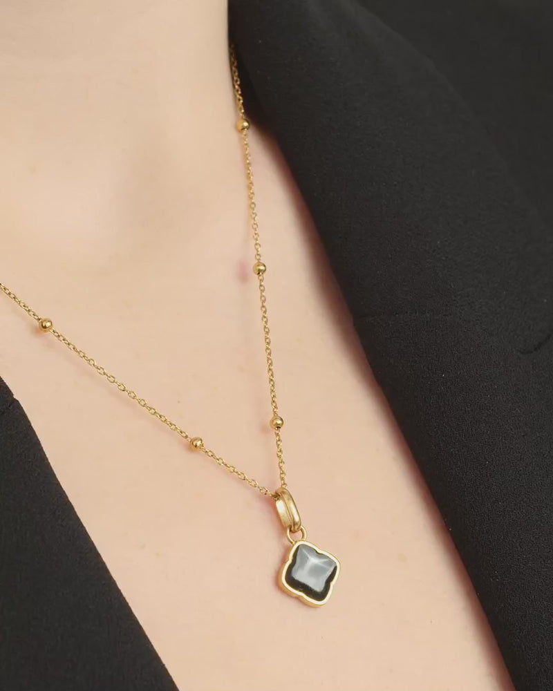 Black Enamel Clover Pendant (Gold)