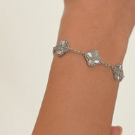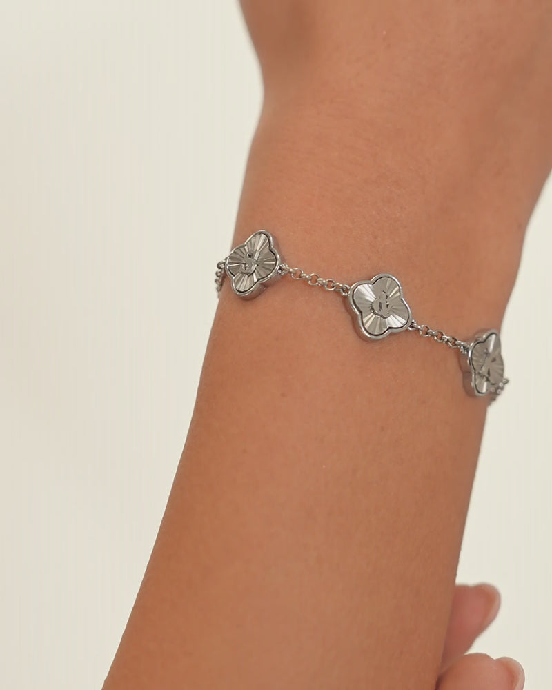 The ultimate designer-inspired custom jewellery, our stunning clover pieces are available in a beautiful mother of pearl affect, a chic fluted texture or a gorgeous molten finish. Complete with the initials or name of your choice, stack with other bracelets from our collection to complete your look.