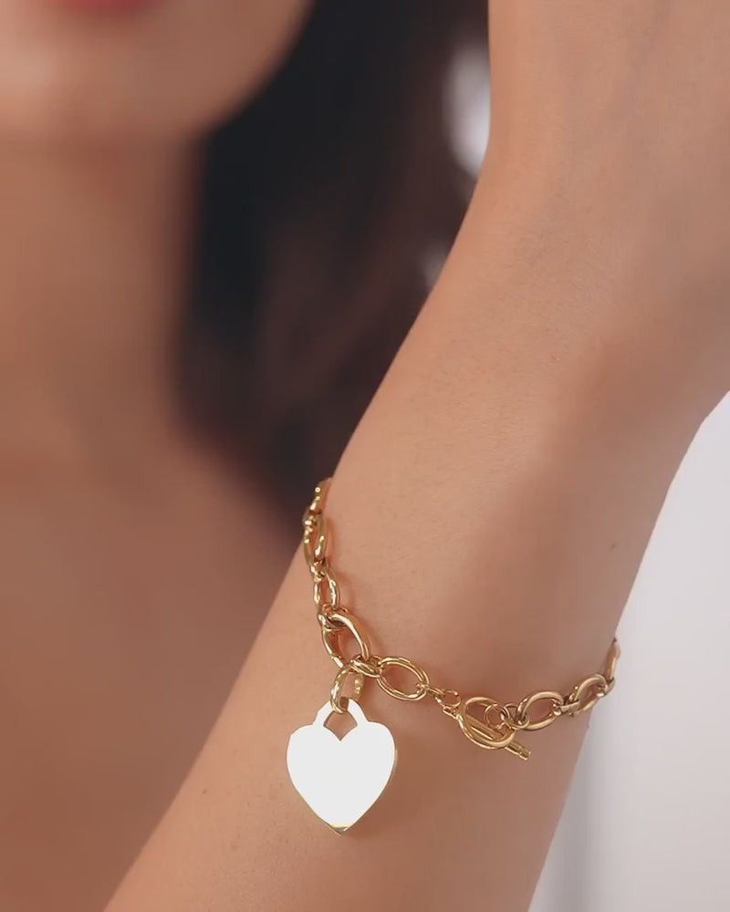 This simple style makes a statement thanks to its oversized, oval-shaped links. Add this gold bracelet to your wrist stack for some vintage-inspired glamour, or wear it on its own and pair it with the matching Oval Chain Link Necklace for a coordinated look. Make it an extra special gift when you add a pendant to their bracelet.