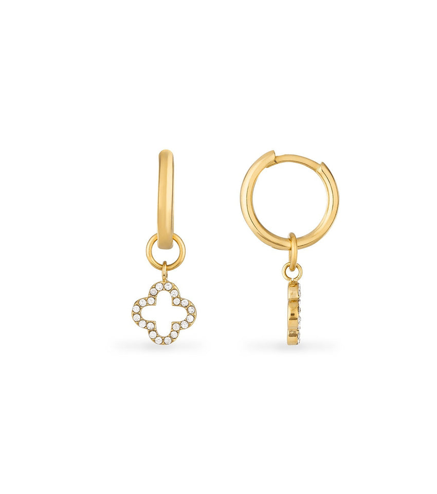 Our gold huggie hoops are a fan favourite. We've upgraded them this season with our new clover shape, and a bit of sparkle. Pair them with other pieces from our clover collection to build the perfect gift set for someone special.