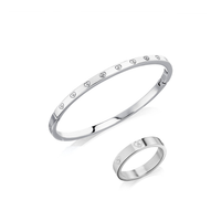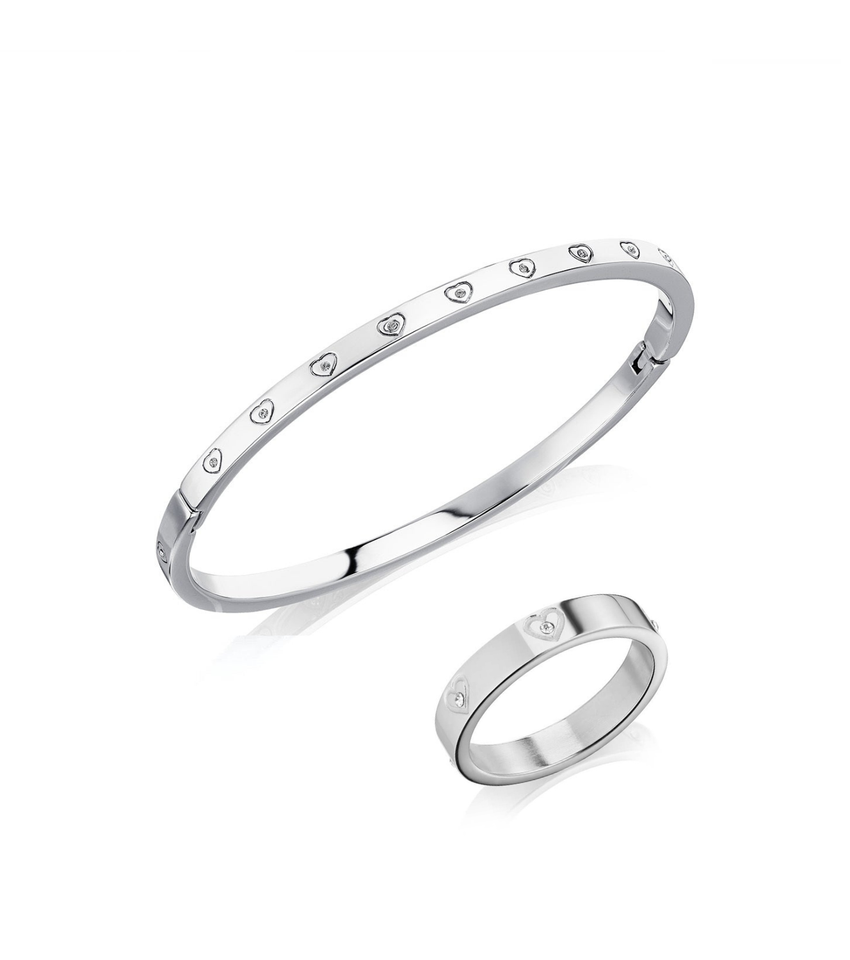 Crystal Heart Bangle (Silver)