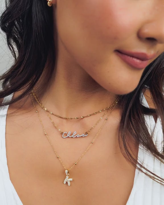 Getting deja vu? That'll be because this is a sparkling twist on our best selling Signature Name Necklace – which is totally unique to you. Play with up to 12 characters, ready to be embellished with cubic zirconia crystals, and create a classic bespoke piece that’s all about you or someone special. Choose your layering length from three different chain options.