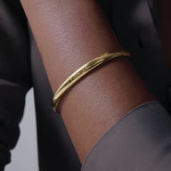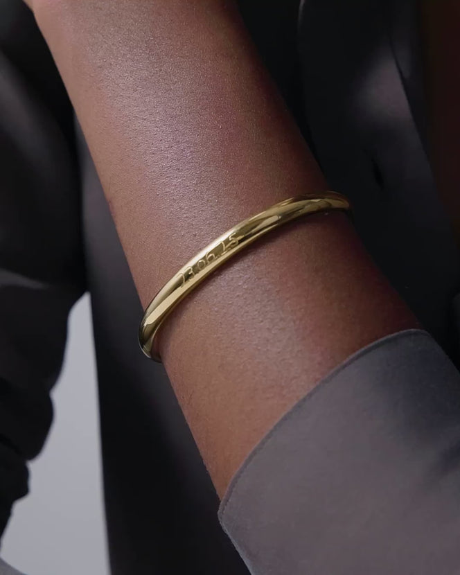 Sleek and effortlessly elegant, our Domed Bangle is a modern must-have. With a curved silhouette and luxurious 18k gold plating, make it yours (or theirs) with a handwritten outer and inner engraving. Stack with your favourite Abbott Lyon bracelets or style solo for a refined, less-is-more look.