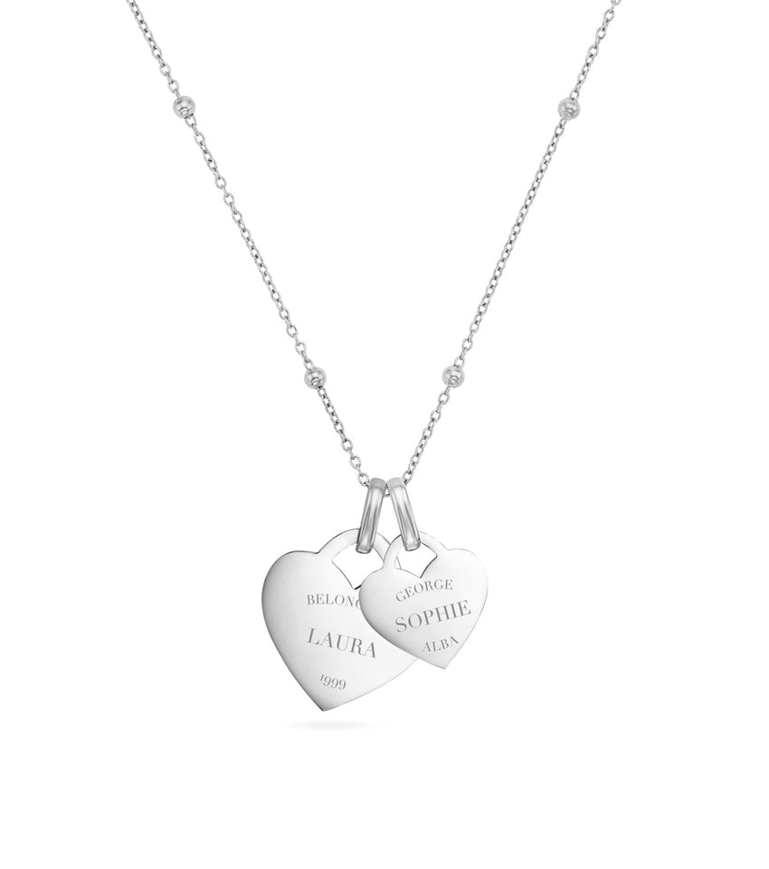 Double Heart Token Necklace (Silver)