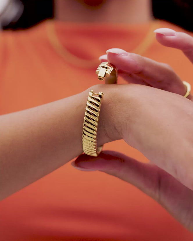 Commemorate unbreakable bonds or unforgettable memories with this 18k gold-plated bangle. Part of the Entwine Collection, it’s perfect for wearing day to night. The designer-inspired rope texture is a refined twist to classic smooth and adds effortless elegance to any outfit. Make it even more special by engraving a personalised message on the inside – a gift for yourself or a special someone can never be too sentimental.