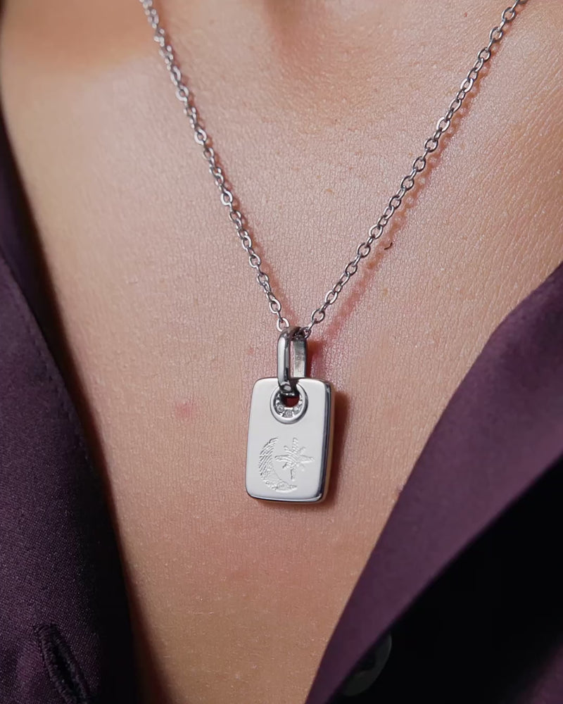 Fingerprint Moon & Star Tag Necklace (Silver)