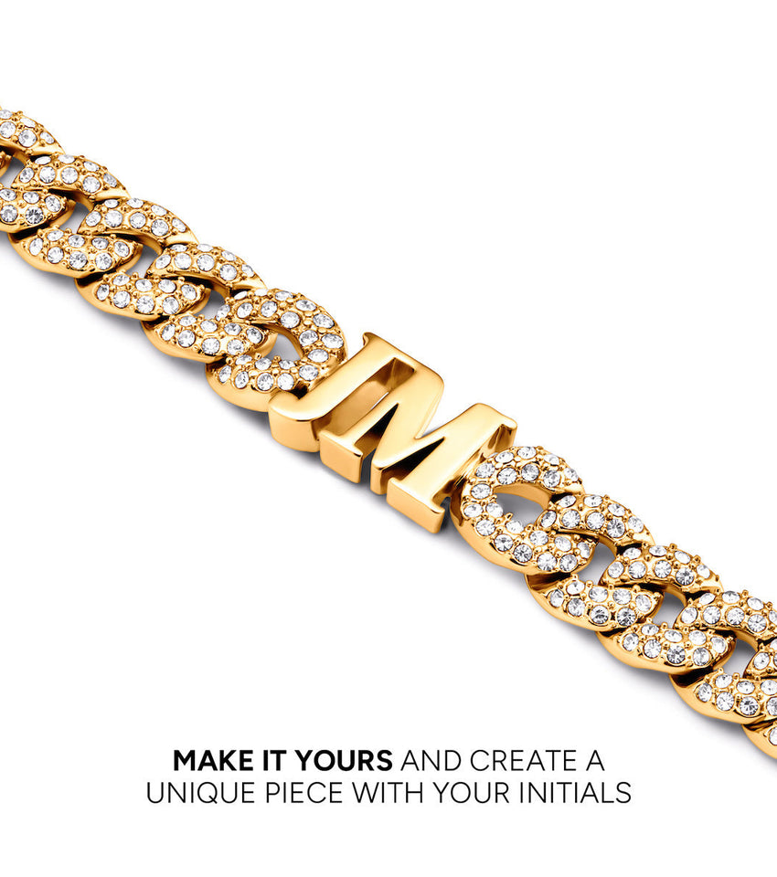 Embrace high glamour with this 18k gold-plated choker with a pavé crystal finish. Choose your initials to make it even more you, and wear everyday to bring shine to any outfit. It’s also the perfect thoughtful gift for your most glamorous friend.