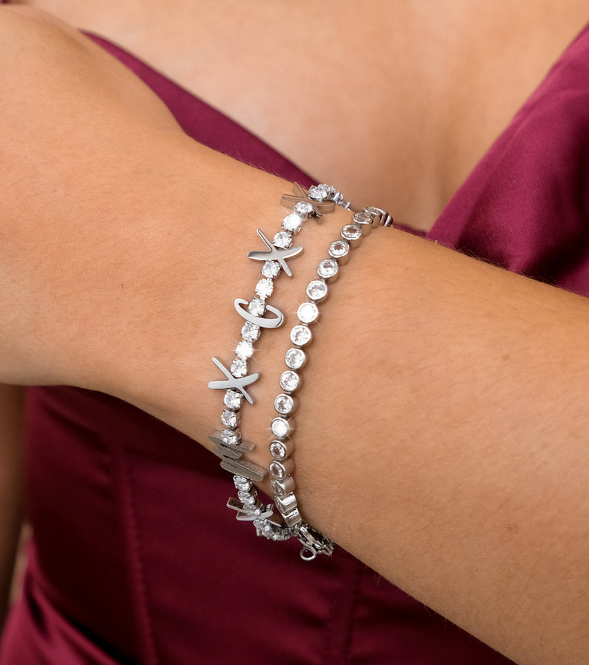 Crystal Fixed Charm Bracelet (Silver)