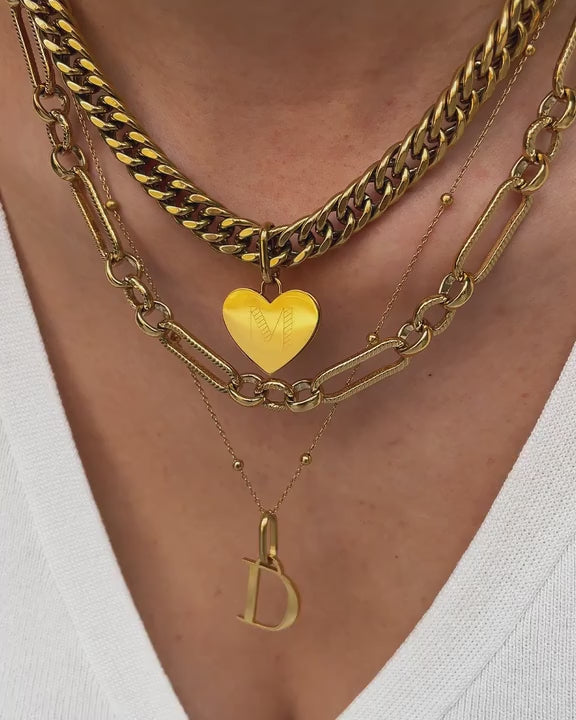 Help others discover Heart & Letter Multi Chain Layered Set (Gold)