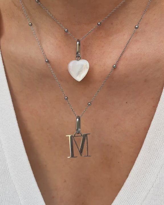 We've done the styling for you with our beautiful collection of layered sets. Our most wanted chains and pendants have been curated into effortlessly stylish combinations to create the must-have luxe layered look that will complete every outfit. Here we've paired our classic silver Sphere Chain necklaces with the best-selling heart-shaped Birthstone and editorial Letter Pendants of your choice to create a statement look that is unique to you.