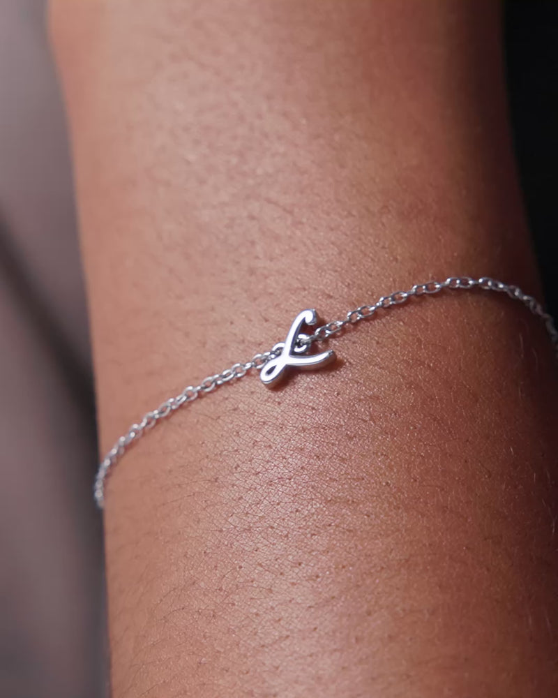 One of our daintiest personalised designs yet. A timeless way to carry a loved one’s initial or your own, this understated yet elegant script letter bracelet adds a touch of meaningful sophistication to any look. Finished in premium silver plating, every detail is crafted with lasting luxury. Want to add more charms? Choose our Made Mine Charm Bracelet and customise with birthstones and symbols that tell your story.