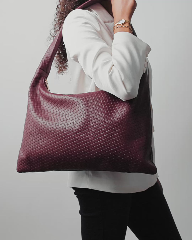 Effortless luxury, every day. Crafted from genuine black cowhide with a subtle embossed weave, meet your forever leather bag. With a boxy oversized silhouette and easy zip-top closure, there's plenty of space for your laptop, makeup and other on-the-go essentials. From initials to clovers and hearts, make it yours with the choice of Five detachable bag charms.