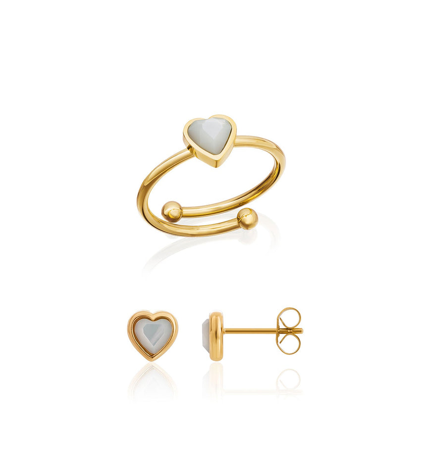 Mini Heart Birthstone Ring & Earring Set (Gold)