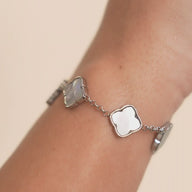 Help others discover Multi Pearl Clover Bracelet (Silver)