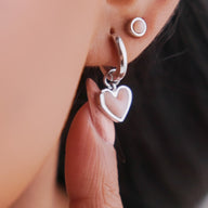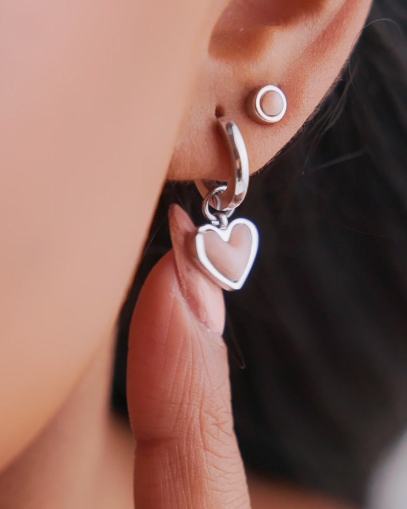 Pale Pink Opal Heart Huggie Earrings & Stud Set (Silver)