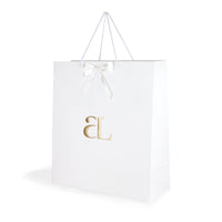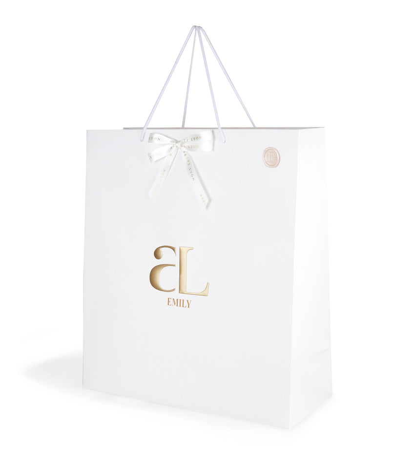 Add our luxury gift bag to add a special finishing touch to any present. Upgrade with gold personalised text and a blush wax stamp with the initial of your choice, add our luxury gift bag to add a special finishing touch to any present.