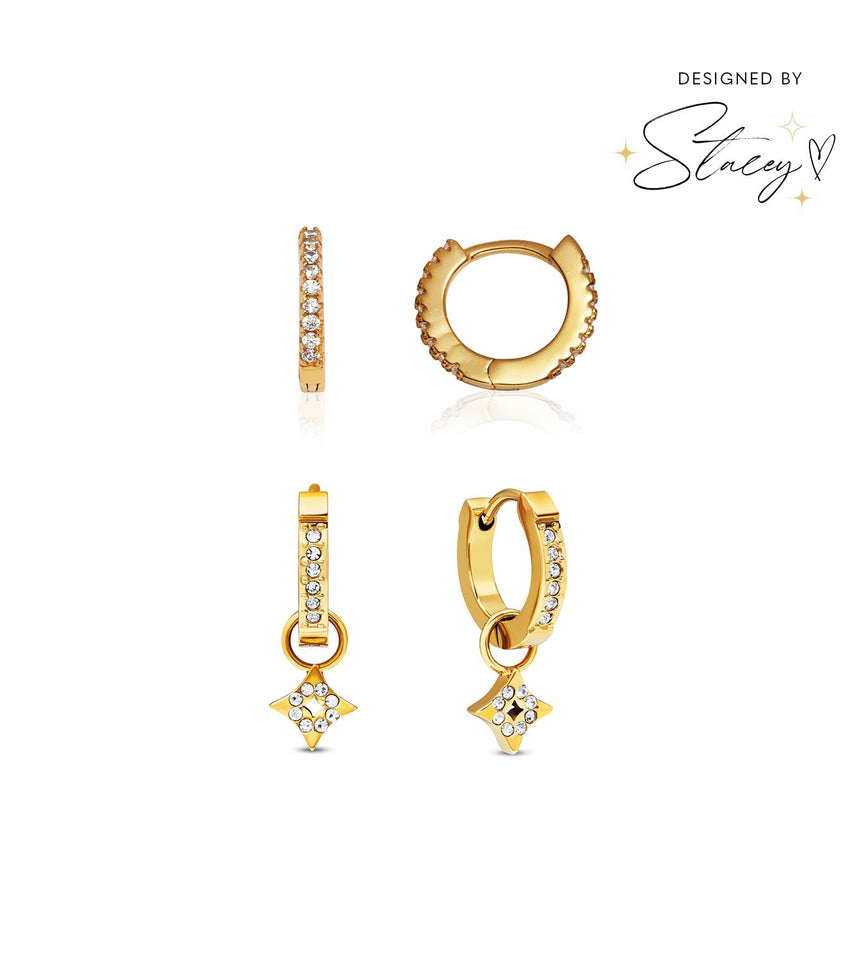 Feel like the star you are with these clear cubic zirconia gem-studded star charm huggie earrings, plated in 18k gold. Part of the To The Moon And Back Collection, this money-saving bundle is perfect for everyday wear and gifting to your favourite friends.