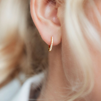 Sterling Silver Crystal Huggie Hoop Earrings (Gold)