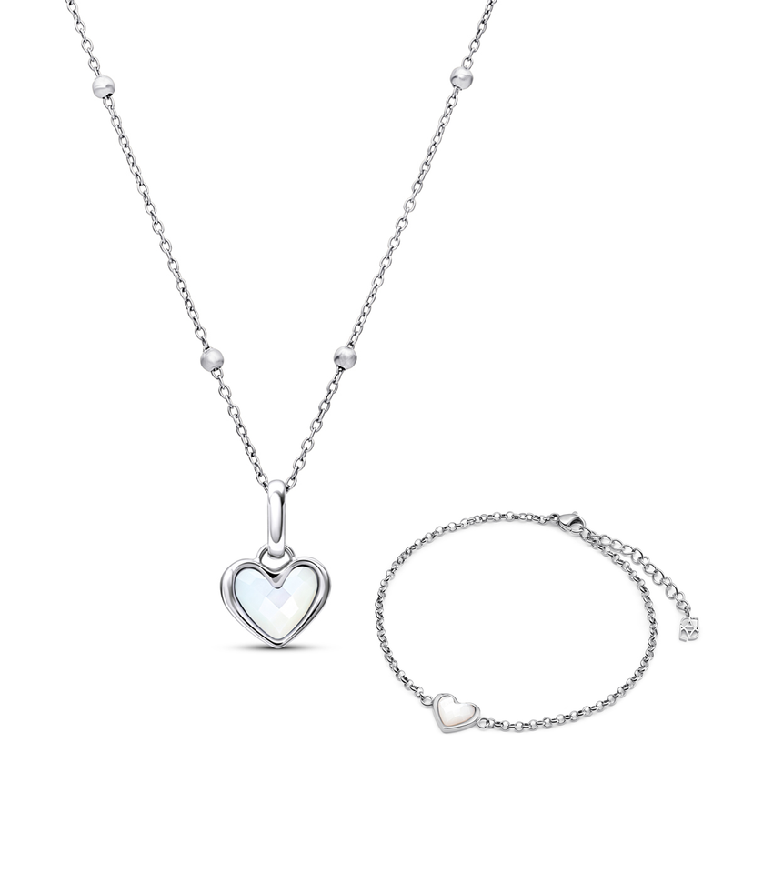 White Quartz Heart Necklace & Bracelet Set (Silver)