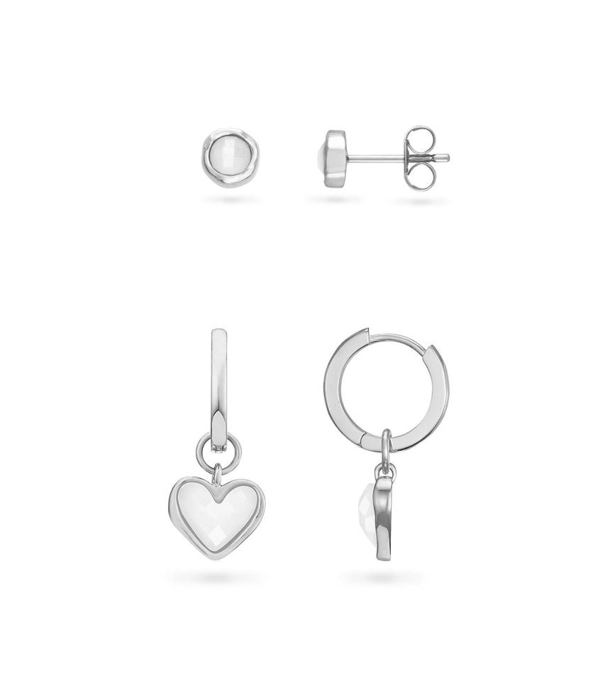Help others discover White Quartz Heart & Stud Earrings Set (Silver)