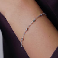 Part of Stacey Solomon's Written In The Stars collection, this silver chain bracelet brings a subtle celestial sparkle to your everyday style. Delicate star charms are spaced along the chain, each set with a clear preciosa stone at the centre. The perfect gift for yourself or someone special — pair with our personalised Written In The Stars tag necklaces for a dreamy and meaningful look.
