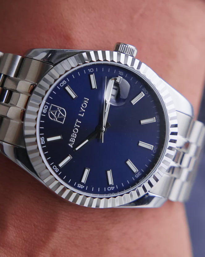 Our bestselling Belgravia watch, reimagined in a timeless new design. With a sleek blue dial, polished inner links framed by soft-brushed outer links, and a silver-plated stainless steel strap, this luxurious timepiece makes the perfect piece you’ll reach for again and again. Complete with a magnifying cyclops lens over the date window, it’s an everyday classic designed to keep you on time for every meaningful moment. A treasured addition to your collection or a thoughtful gift for the men in your life.