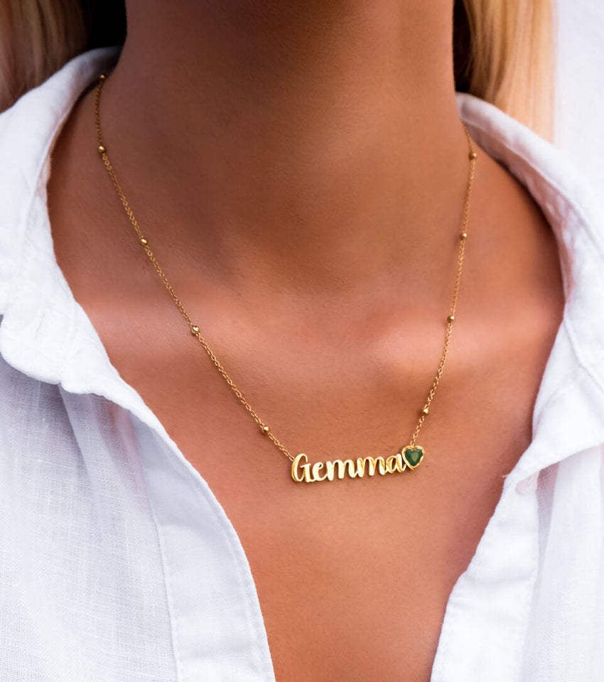 With a range of chains, colours and styles to choose from, our iconic Name Jewellery collection enables you to create the ultimate signature accessory or gift. These exclusive pieces are handmade to order, so are totally unique to you. Featuring the beautiful heart shaped birthstone of your choice, play with up to 12 characters in our best-selling signature font to create a stunning bespoke Name Necklace that’s all about you or someone special.