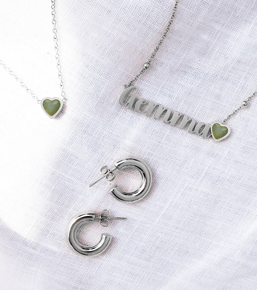 These exclusive pieces are handmade to order, so are totally unique to you. Featuring the beautiful heart shaped birthstone of your choice, play with up to 12 characters in our best-selling signature font to create a stunning bespoke Name Necklace that’s all about you or someone special.