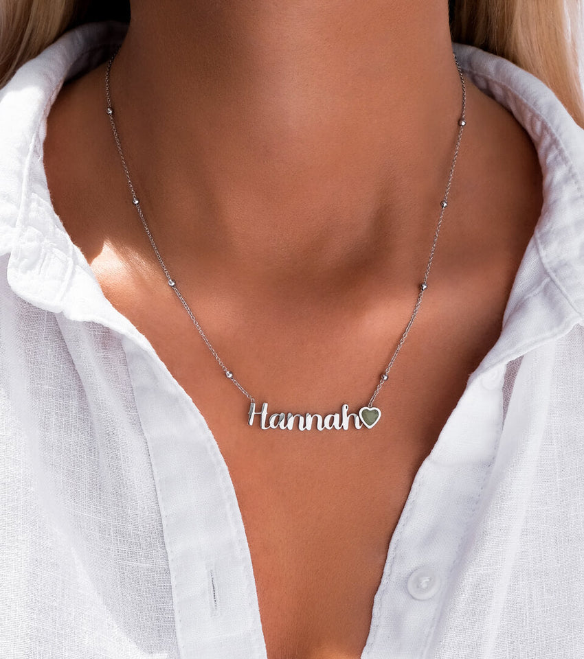 Birthstone Name Necklace (Silver)