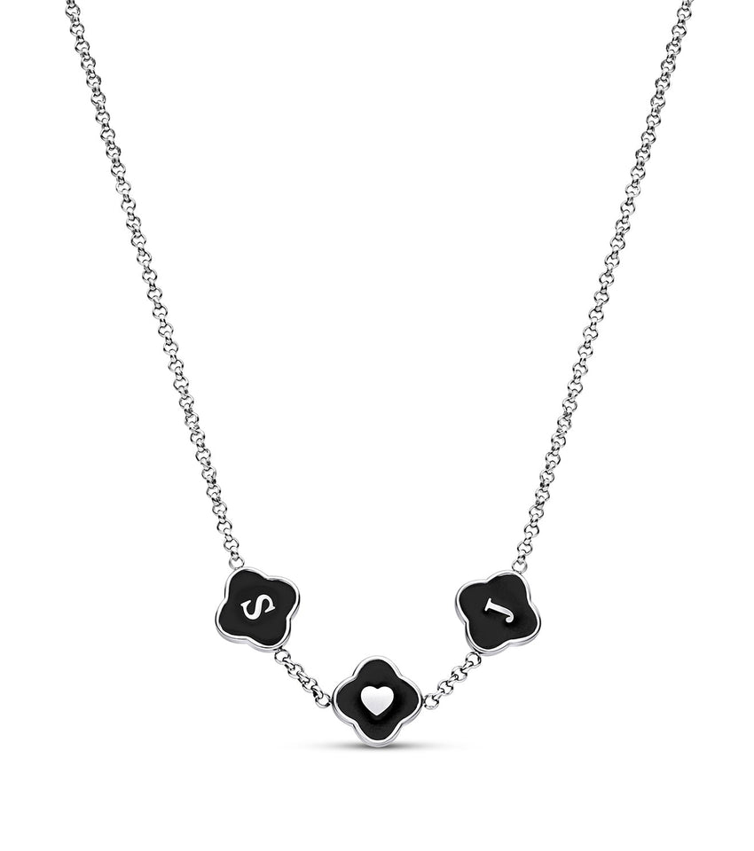 Help others discover Black Enamel Clover Custom Name Necklace (Silver)