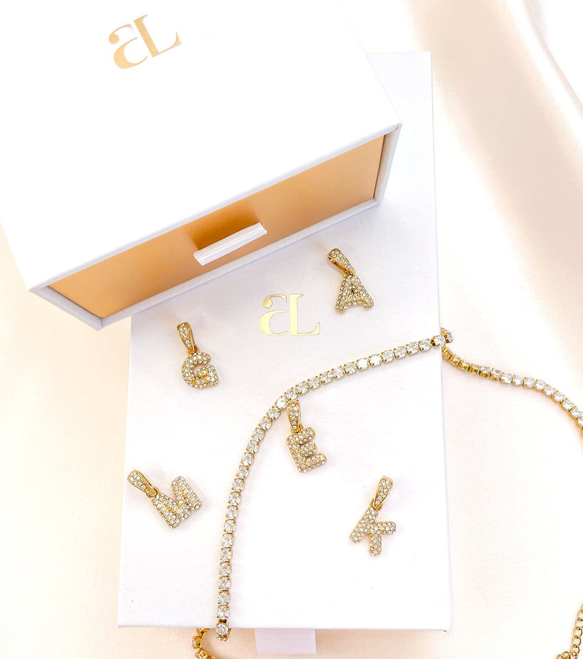 In a fun bubble font embellished all-over with crystals, this pendant is full of sparkling personality. Add to your favourite necklace or bracelet chain, and create an accessory that's unique to you or someone special.