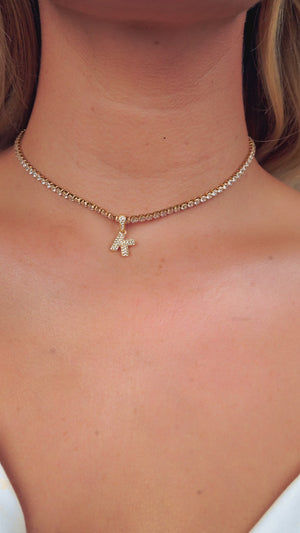 Bubble Initial Tennis Necklace (Gold)