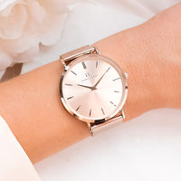 The Blush Stellar is a totally unique & perfect mix of Silver and Rose Gold, giving it a subtle luxury shimmer and making it one of our most wanted watches.