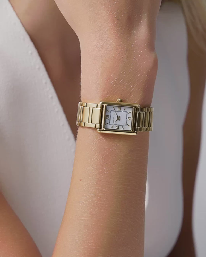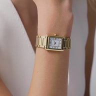 Elegant and understated, our new Tank Watch brings a touch of vintage inspiration to the everyday. With its retro-style rectangular dial in faux mother-of-pearl and a gold-plated stainless steel bracelet, it’s designed for timeless wear. The H-shaped link bracelet tapers subtly for a refined, comfortable fit — a modern classic you’ll reach for again and again.