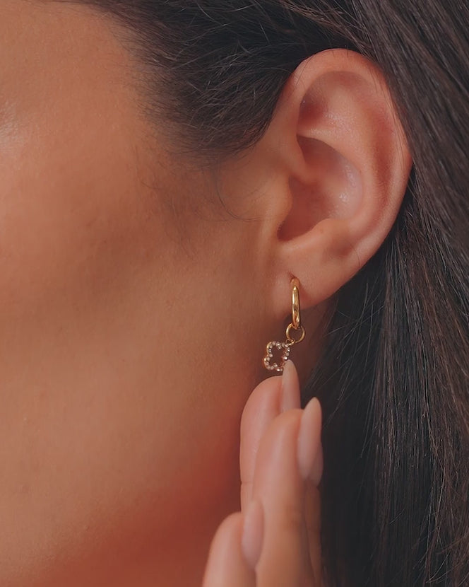 Our gold huggie hoops are a fan favourite. We've upgraded them this season with our new clover shape, and a bit of sparkle. Pair them with other pieces from our clover collection to build the perfect gift set for someone special.