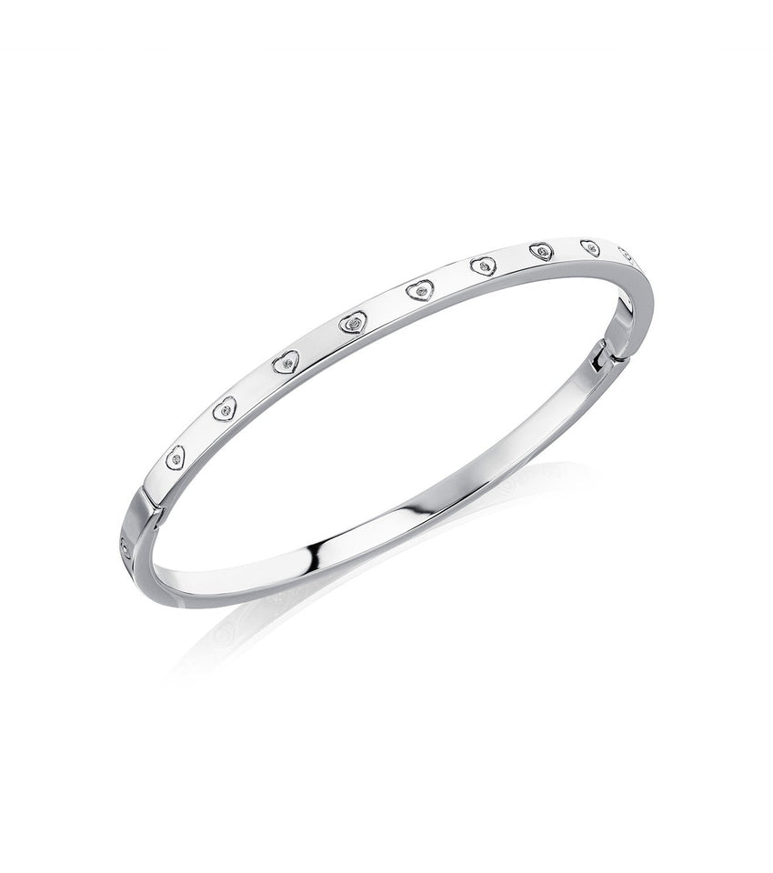 A classic design with a contemporary finish, our premium silver bangle features a pretty heart detail and just the right touch of sparkle. The perfect accessory to elevate your every day look, this luxury bangle will become your new style staple.