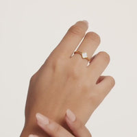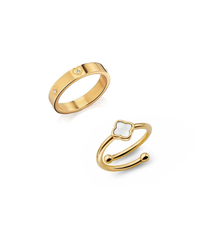 Crystal Heart & Pearl Clover Ring Set (Gold)