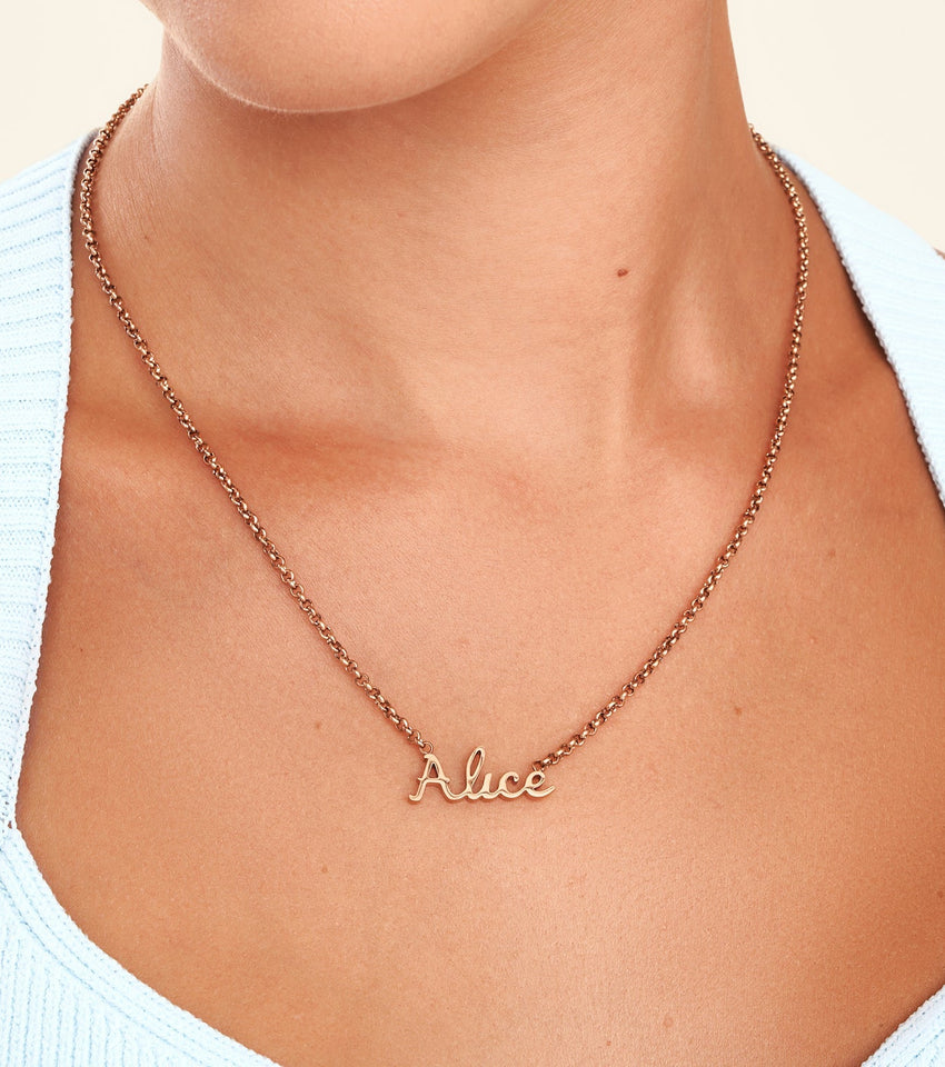 Everyone needs a name necklace in their jewellery wardrobe, and we love this rose gold one in its romantic, cursive font. Choose up to 12 characters for your pendant, and then pick the perfect chain from our three best-sellers. Design one for you if you're keen to treat yourself, or gift it to someone else for a special occasion.