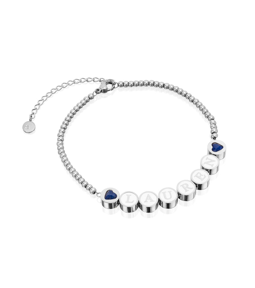 Totally unique to you, our gorgeous gold Custom Bead Bracelet allows you to create the name or word of your choice with chic letter beads. For an extra special touch, add the birthstone hearts that represent you or someone you love.