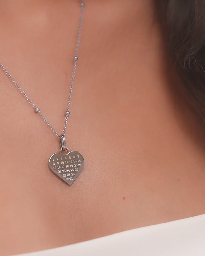 Custom Calendar & Fingerprint Heart Necklace (Silver)