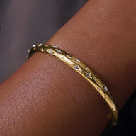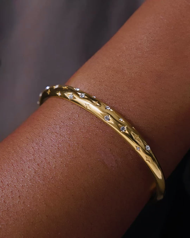 One of our most-loved styles, this 18k gold-plated crystal bangle is now made even more meaningful. Part of our beloved To The Moon And Back collection, it’s a beautiful gift for someone special or a lasting piece to treasure yourself. Personalise this piece with a handwritten message or complete the set with matching hoop earrings for a look that shines from day to night.