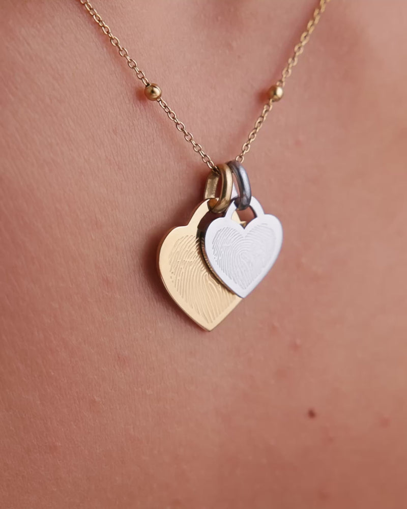 Double Heart Token Fingerprint Necklace (Gold & Silver)