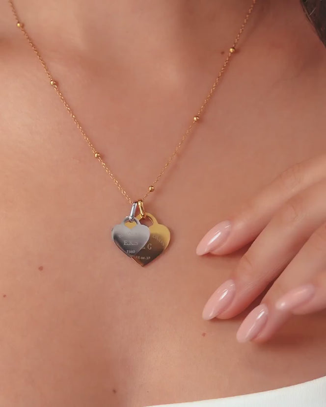Five hearts are better than one with this necklace. Pair your gold Heart Token charm with a Mini Heart Token charm in gold or silver, and personalise both with engraving. Then, choose your favourite Abbott Lyon gold chain to finish the piece off.