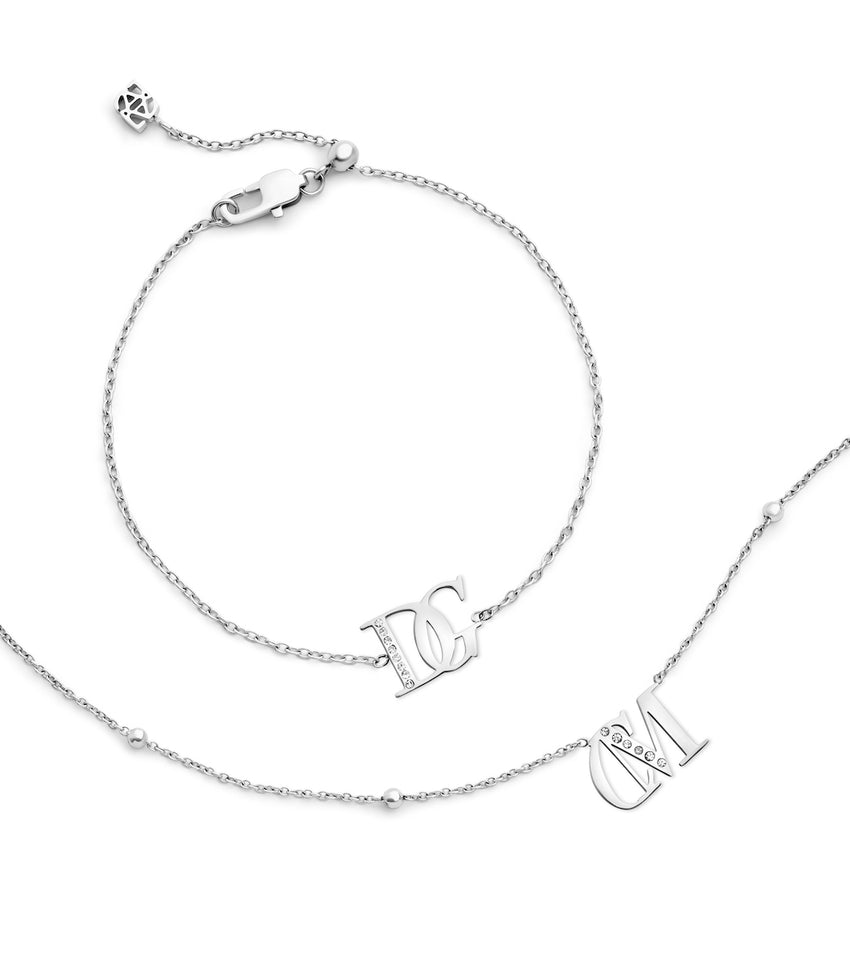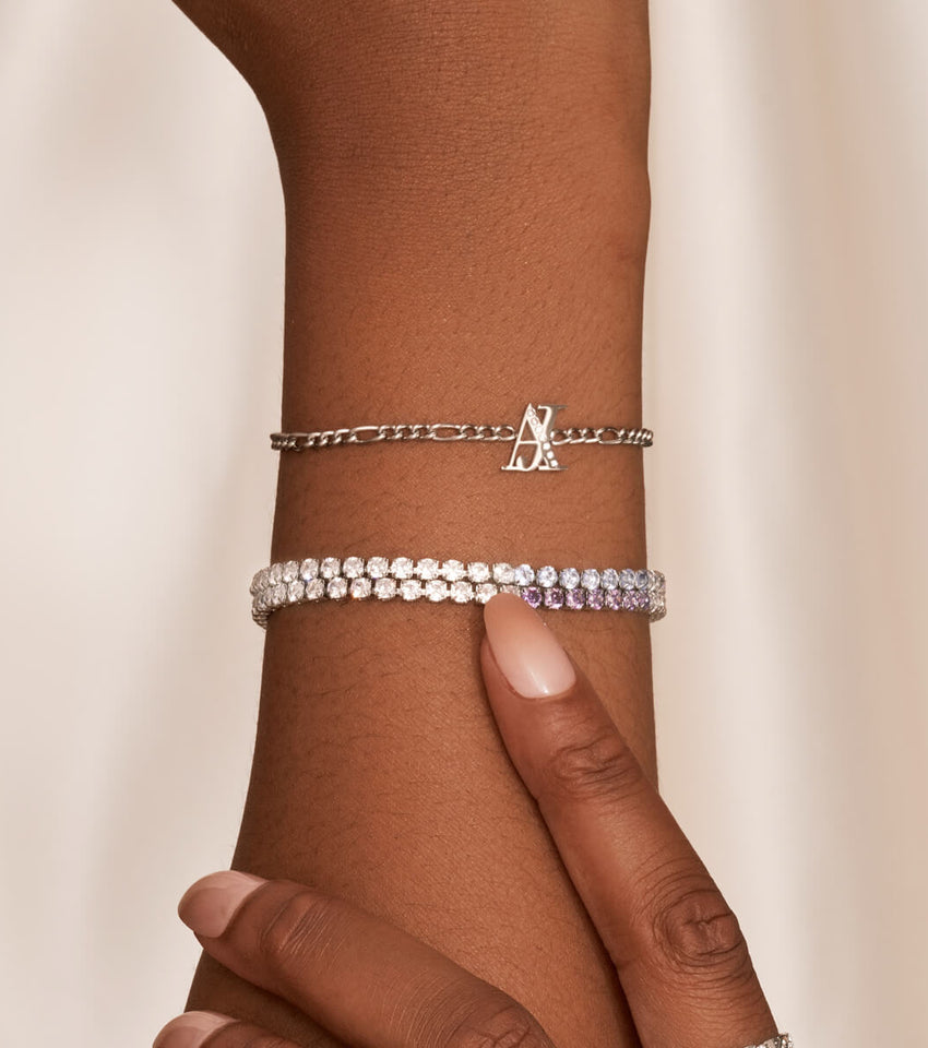 Double Initial Crystal Bracelet (Silver)