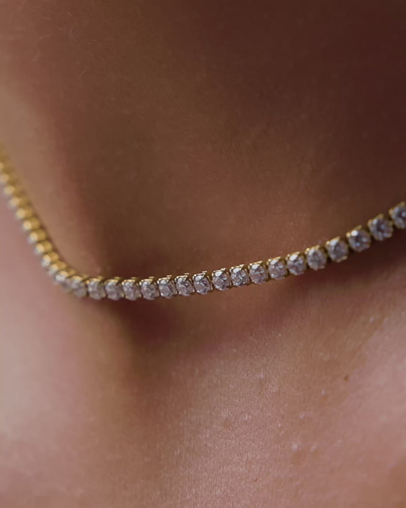 Paved with shimmering cubic zirconia crystals, this gold tennis choker is a true jewellery box essential. A timeless icon, everyone from Rita Hayworth in Gilda to Alicia Silverstone in Clueless has styled this shimmering necklace. The perfect injection of glamour - it's classic, effortless, and forever in style.