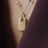 Part of Stacey Solomon's Written In The Stars collection, celebrate unbreakable bonds with this celestial fingerprint tag necklace. Personalise the front with one or two fingerprints, all set within a harmonious star and moon design. Add either embossed initials or a handwritten message on the reverse, keeping your loved ones close wherever you go. A subtle crescent moon at the chain opening adds a delicate celestial touch, making it a meaningful piece to wear solo or layered with your favourite chains.