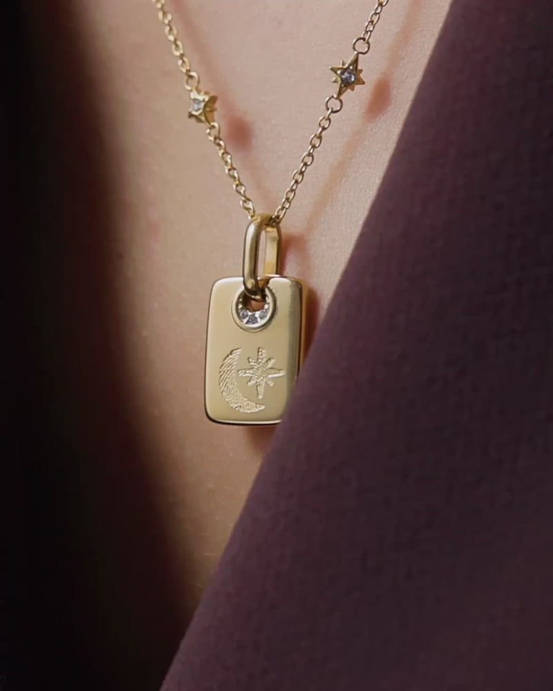 Fingerprint Moon & Star Tag Necklace (Gold)