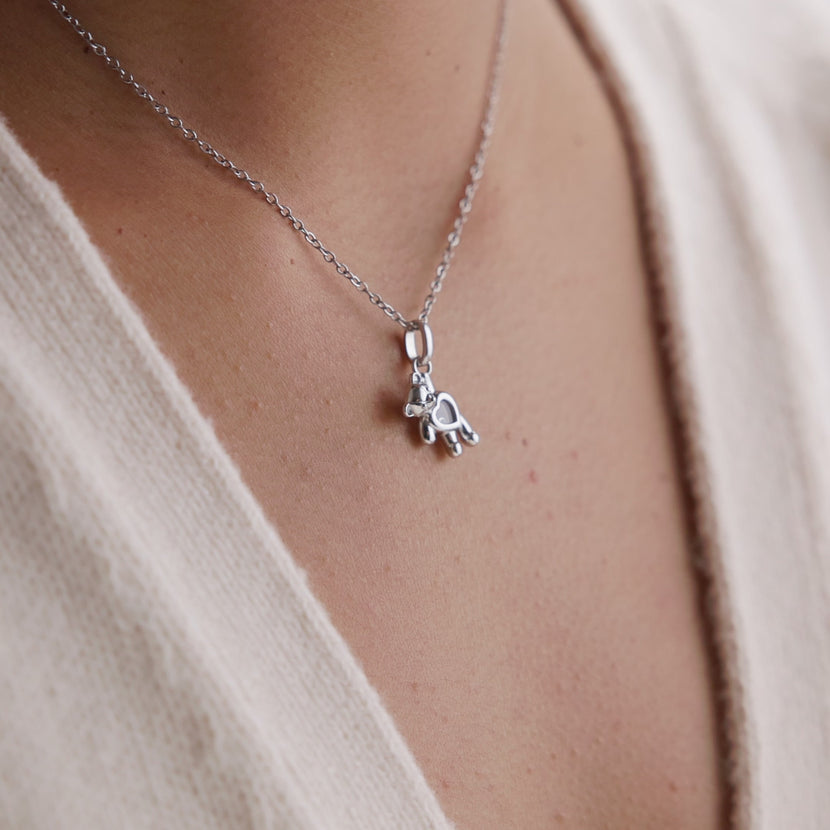 A tiny bear with a big meaning, this necklace is a keepsake you’ll wear and love for a lifetime. Our first-ever teddy bear design, this necklace is crafted in platinum plating and set with a single stone in its heart-shaped belly. A meaningful gift for yourself or someone special, it’s a subtle keepsake you'll treasure forever.