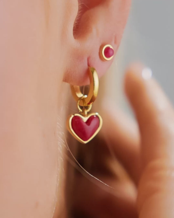 The perfect pairing, this fuchsia quartz heart earring set is a timeless token of love. Crafted in 18k gold plating, both the heart huggies and matching round studs are finished with fuchsia pink quartz stones, said to symbolise love, compassion, and emotional healing. Engrave your (or your loved one’s) initials on the back of the huggie hearts for a subtle detail, making this piece feel truly personal. A thoughtful gift for yourself or someone you love, this set is made to be worn and loved every day.