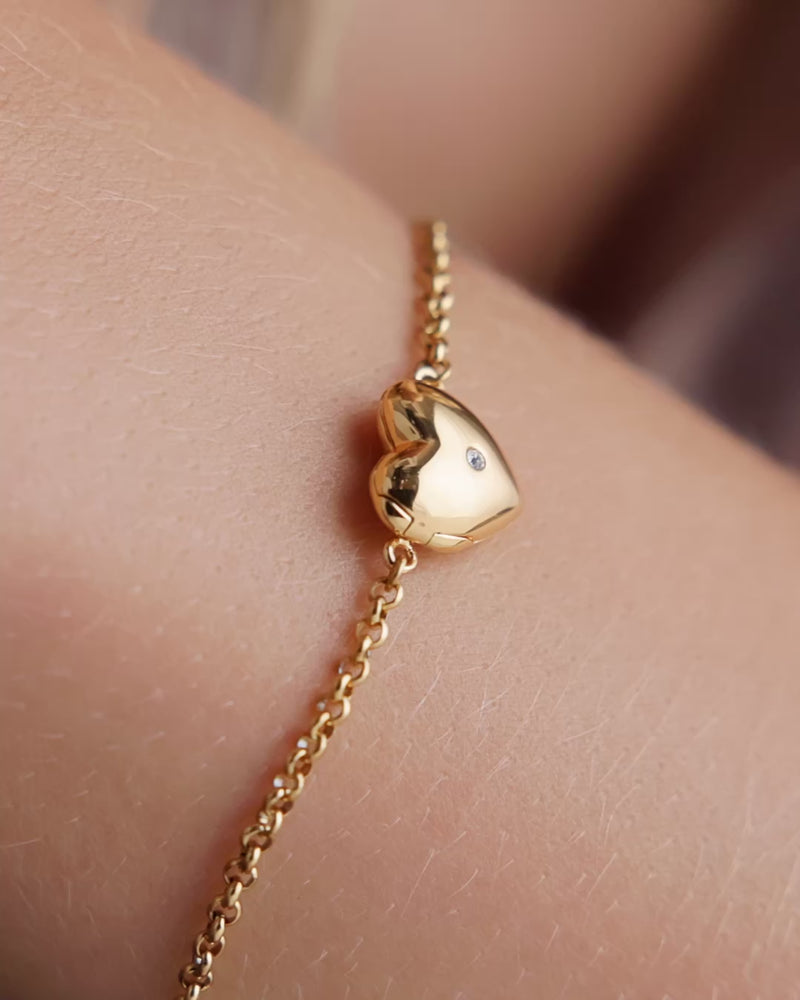 Designed to hold your most cherished photo, this 18k gold-plated heart bracelet keeps loved ones close wherever you go. Make it truly personal with a secret message or fingerprint engraving inside and a birthstone on the front representing someone special. Perfect to wear every day or give as a meaningful gift.